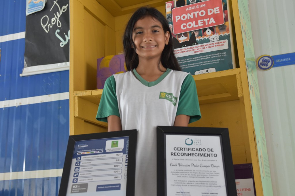 Duas unidades educacionais da rede pública municipal de Cuiabá receberam o Prêmio Lixo Zero, na categoria educação, a Escola Municipal de Educação Básica (EMEB) Vereador