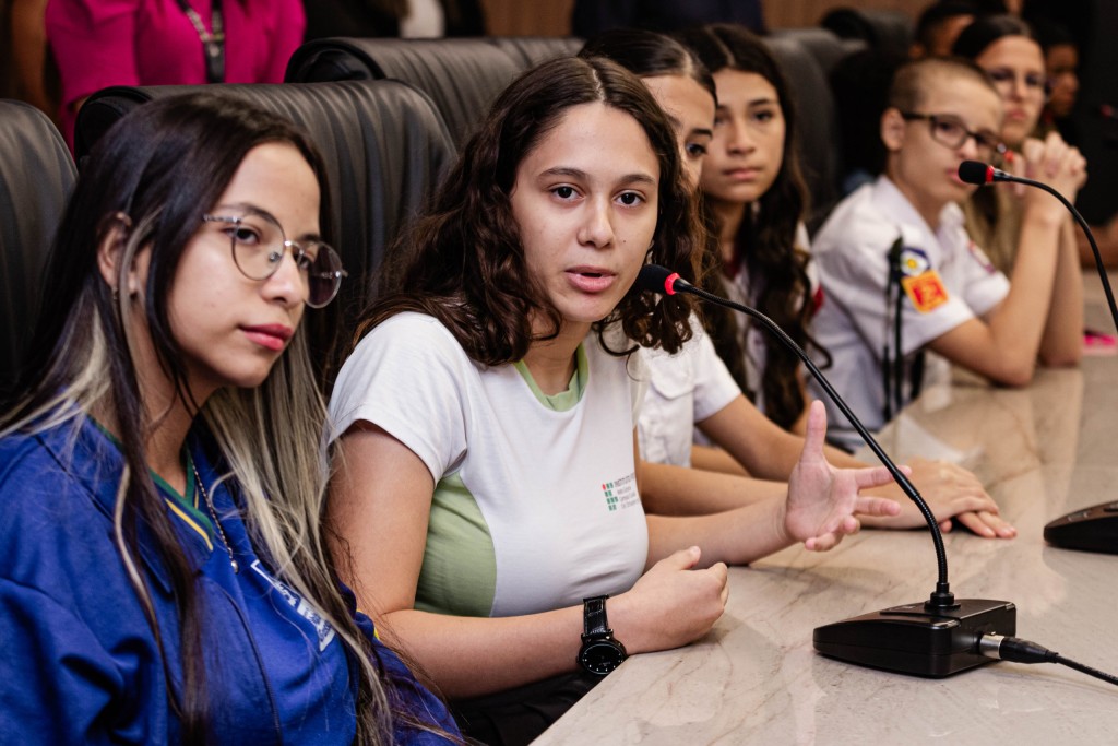 O presidente da Comissão de Educação da Assembleia Legislativa (ALMT), deputado Thiago Silva (MDB), recebeu, nesta quarta-feira (26), os 24 estudantes das redes pública e