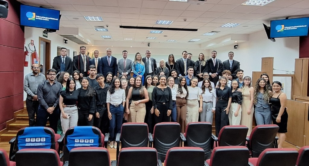 Trinta e cinco acadêmicos do curso de Direito da Universidade do Estado de Mato Grosso (Unemat), campus de Diamantino (a 200 km de Cuiabá), conheceram nesta quarta-feira (24) o edifício-sede do Tribunal Regional Eleitoral de Mato Grosso (TRE-MT), em Cuiabá, e puderam acompanhar uma sessão plenária da instituição. O objetivo da iniciativa, desenvolvida pela Escola Judiciária Eleitoral (EJE-MT), é promover a aproximação entre a Justiça Eleitoral e a comunidade acadêmica, por meio do compartilhamento de conhecimentos sobre a atuação prática do Direito especializado.