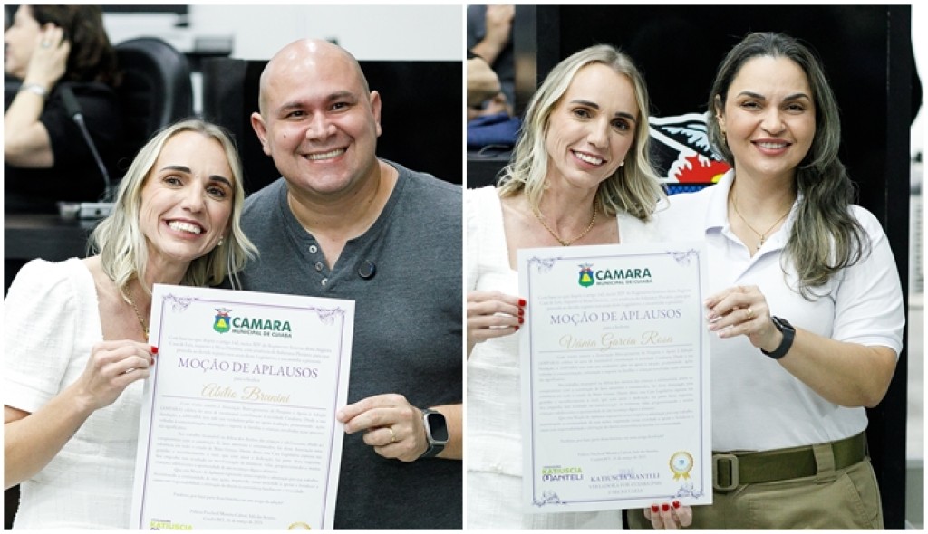 O prefeito de Cuiabá, Abilio Brunini, e a vice-prefeita e secretária de Assistência Social, Coronel Vânia Rosa, receberam na segunda-feira (31) noções de aplausos durante a sessão solene que celebrou os 16 anos da Associação Mato-Grossense de Pesquisa e Apoio à Adoção (AMPARA). O evento foi realizado no Plenário das Deliberações da Câmara Municipal de Cuiabá e presidido pela vereadora Katiuscia Manteli. A solenidade também foi acompanhada pela primeira-dama e vereadora Samantha Iris (PL). A prefeita de Várzea Grande Flávia Moretti também participou do evento e foi agraciada com uma honraria.