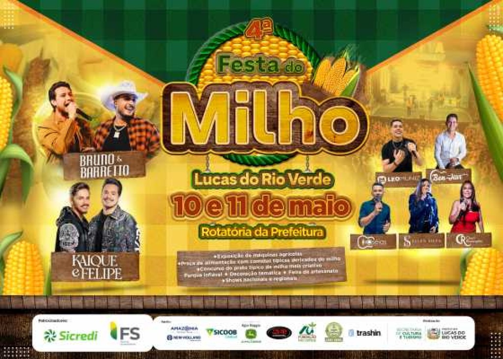 A Festa do Milho não acontece sem o brilho dos talentos da terra. Por isso, nesta 4ª edição, a Prefeitura de Lucas do Rio Verde, por meio da Secretaria de Cultura e Turismo, confirma a participação de artistas locais que prometem agitar o público com apresentações especiais nos dias 10 e 11 de maio, na rotatória da Prefeitura.