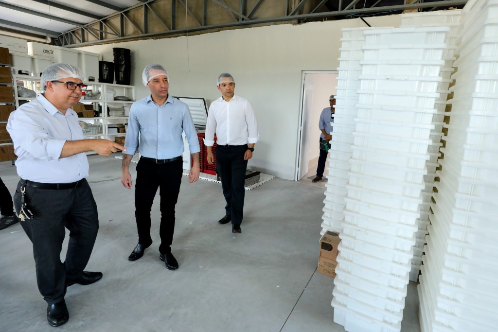 O secretário de Estado de Justiça, Vitor Hugo Teixeira, acompanhou a equipe da CGE durante vistoria à empresa que fornece as refeições para Penitenciária Central do Estado (PCE), Penitenciária Feminina Ana Maria do Couto e Centro de Atendimento Socioeducativo, em Cuiabá. São preparadas, em média, cinco toneladas de refeições ao dia na empresa Novo Sabor, do Grupo Leila Malouf.