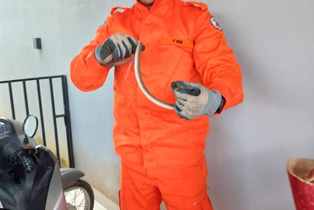 A equipe do 4º Núcleo Bombeiro Militar (4º NBM) foi acionada pelos próprios moradores que relataram a presença do animal na casa. Ao chegarem ao local, os militares identificaram se tratar da espécie cobra cipó, considerada não peçonhenta, ou seja, não possui veneno e não representa risco para humanos