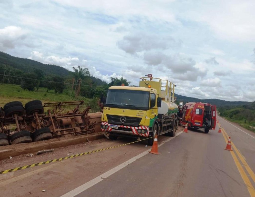 A equipe do 4º Núcleo de Bombeiros Militar (4º NBM) foi acionada para realizar o resgate do condutor, cujo caminhão tombou e parou às margens da rodovia. Imediatamente, uma viatura foi deslocada para o atendimento.