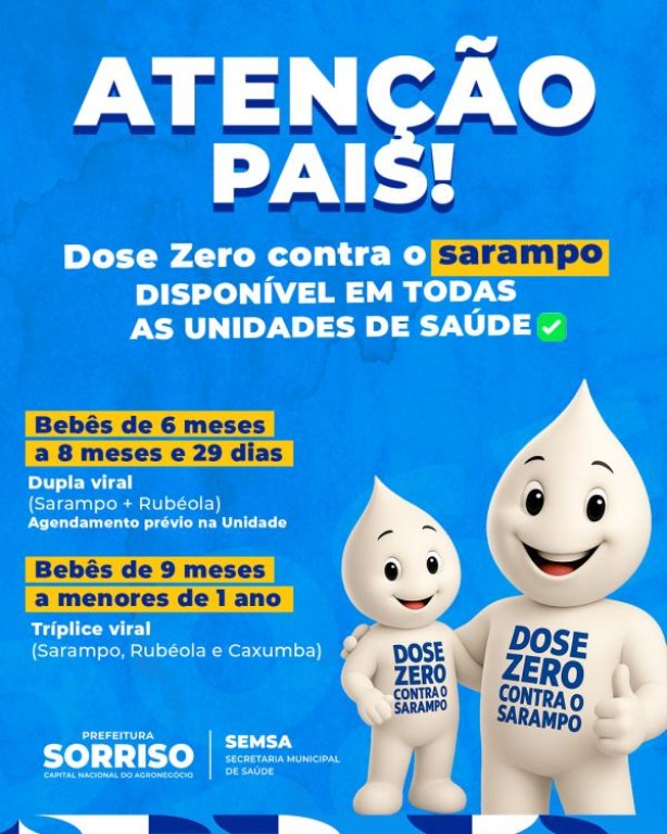 A medida segue orientação do Ministério da Saúde, que reforçou a necessidade da vacinação antecipada diante do risco de reintrodução do vírus no país. Vale destacar que a Dose Zero não substitui as vacinas de rotina, que seguem sendo obrigatórias aos 12 e 15 meses.