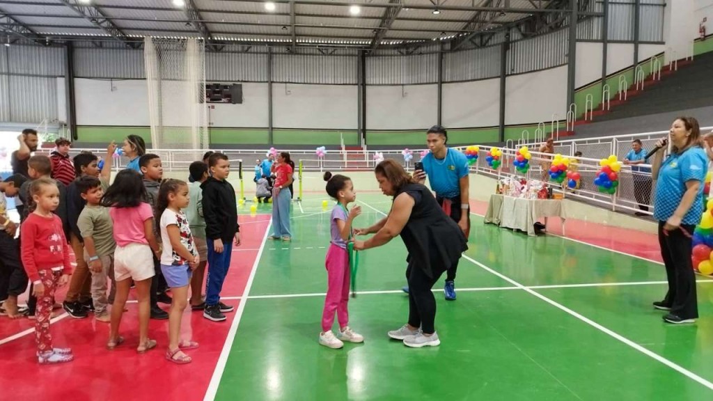 A manhã da gincana ‘EU E MEU FILHO SOMOS + contou ainda com as apresentações do Coral Doce Melodia da Escola Municipal de Educação Básica (EMEB) ‘Emanuel Benedito de Arruda’ e da Banda Municipal ‘Manoel Teixeira de Oliveira.