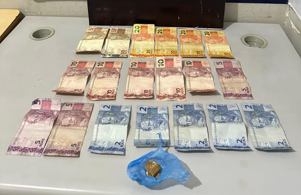 Na busca pessoal, os policiais encontraram R$ 260 com o suspeito. Em seguida, realizaram varredura no local onde o homem havia dispensado um objeto antes de correr, encontrando um invólucro contendo uma pedra de substância análoga à pasta-base de cocaína.