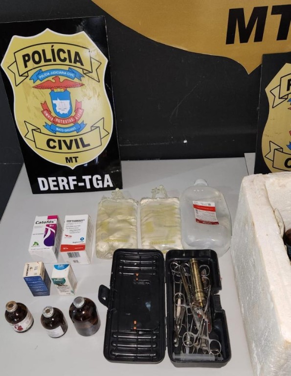 Diante dos fatos e com os mandados expedidos pela Justiça, os policiais civis entraram na casa e no local apreenderam grande quantidade de seringas, medicamentos e instrumentos cirúrgicos, confirmando a prática de procedimento veterinário ilegal.