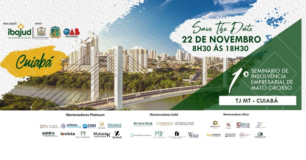 Estão abertas as inscrições para o 1º Seminário de Insolvência Empresarial de Mato Grosso, que será realizado no dia 22 de novembro pelo Instituto Brasileiro de Administração Judicial (Ibajud) em parceria com a Escola Superior da Magistratura de Mato Grosso (Esmagis-MT).