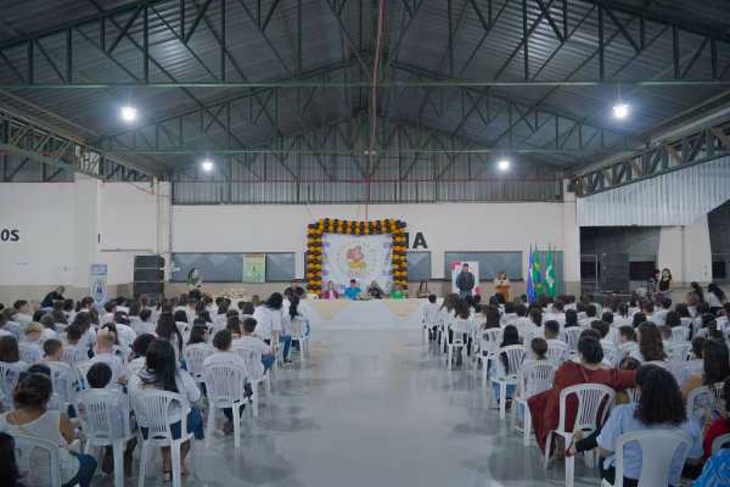 A solenidade foi realizada no pavilhão da Igreja Católica Menino Deus e reuniu autoridades como o comandante do 13º Batalhão da PM, Tenente-coronel Robson Fernandes da Silva, representantes da Câmara Municipal, além das gestoras, coordenadoras e professoras das unidades de ensino.