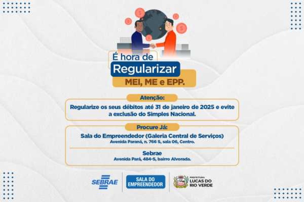A Secretaria de Desenvolvimento Econômico, Planejamento e Cidade, por meio da Sala do Empreendedor e Sebrae, informa que o prazo para negociações de dívidas junto ao Simples Nacional foi prorrogado. Agora, os Microempreendedores Individuais (MEI), as Microempresas (ME) e Empresas de Pequeno Porte (EPP), têm até o dia 31 de janeiro para regularizar a situação e permanecer no regime tributário do Simples Nacional.