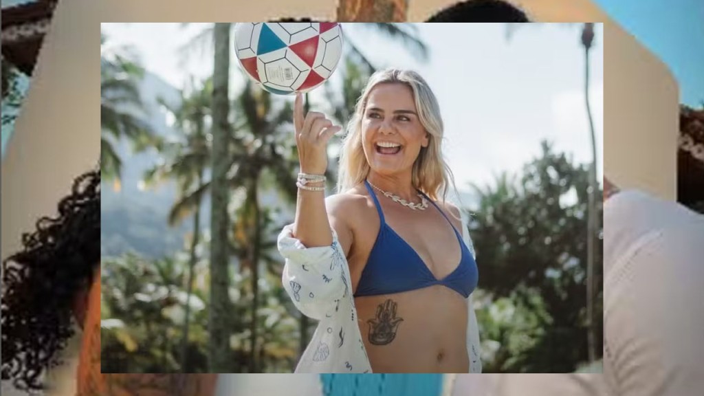 Milene Domingues compartilhou fotos das férias de fim de ano em Maresias, no litoral paulista, onde aparece fazendo embaixadinhas na praia. Aos 46 anos, a apresentadora, conhecida como a “rainha das embaixadinhas” desde a década de 1990, exibiu a habilidade com a bola usando um biquíni azul e trancinhas no cabelo.