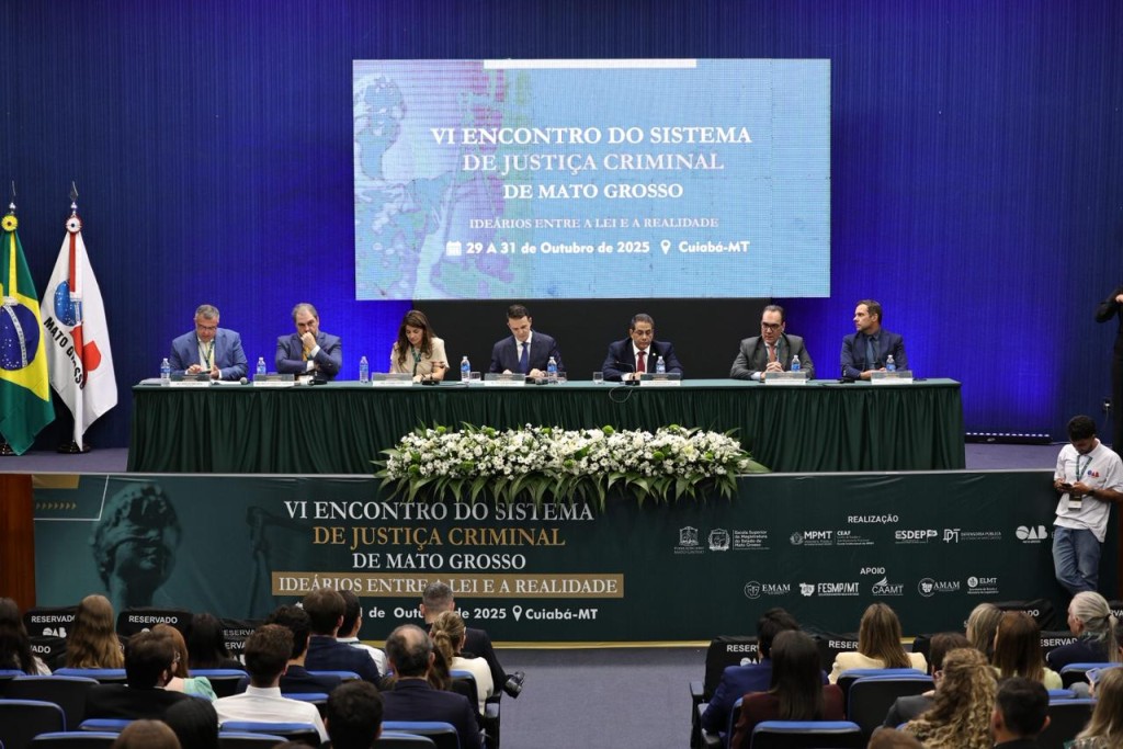 Na noite de quinta-feira (29 de outubro), representantes de diversas instituições que integram o Sistema de Justiça Criminal no Estado deram início ao “VI Encontro do Sistema de Justiça Criminal do Estado de Mato Grosso – Ideários entre a Lei e a Realidade”, realizado em Cuiabá. Idealizado e coordenado pelo desembargador Marcos Machado (TJMT), o evento é promovido pela Escola Superior da Magistratura de Mato Grosso (Esmagis-MT), em parceria com o Centro de Estudos e Aperfeiçoamento Funcional (Ceaf) – Escola Institucional do Ministério Público Estadual (MPMT), a Escola Superior da Advocacia (ESA/OAB-MT) e a Escola Superior da Defensoria Pública (Esdep).“Esse é mais um evento que reúne as escolas superiores de Direito: a Escola da Magistratura, a Escola do Ministério Público, a Escola da Advocacia, da Defensoria, e isso já mostra a importância do diálogo, da convergência, dos pontos de equilíbrio. Os temas desse encontro envolvem a acentuada violência que nós estamos vivendo, sobretudo uma atuação até cruel por parte de facções criminosas. É uma preocupação que ultrapassa a atividade pedagógica e acadêmica, mas, como todos aqui são operadores do direito, com responsabilidades sociais, individuais e funcionais, acredito que teremos mais um momento de compreensão, de firmarmos entendimentos, de aperfeiçoarmos a aplicação da legislação processual penal e penal”, destacou o magistrado.Segundo o desembargador, a realização da sexta edição do encontro demonstra que, mais do que nunca, o Sistema de Justiça Criminal mato-grossense está organizado, dialogando e buscando alternativas diante do avanço do crime organizado em todo o país. “Esse é o grande balanço que tem possibilitado ao Tribunal, à Procuradoria-Geral de Justiça, à Ordem dos Advogados, à Defensoria Geral, a se empenharem e, juntos, patrocinarem esse evento. Pessoas que se destacam no Brasil todo já estiveram conosco nos cinco eventos anteriores e não será diferente nesta sexta edição, que nós realizamos conjuntamente com as demais escolas”, acrescentou.O procurador de Justiça e coordenador do Centro de Estudos e Aperfeiçoamento Funcional (Ceaf) – Escola Institucional do MPMT, Antonio Sergio Cordeiro Piedade, afirmou ser um entusiasta da educação e ressaltou o papel essencial da academia na formação do pensamento jurídico. “Essa interlocução, essa interface do sistema de justiça com a academia, é fundamental. A academia tem, por escopo, o aprimoramento das instituições e dos institutos. Ela não tem uma finalidade em si mesmo, ela busca a melhoria da sociedade, a evolução, o avanço. Então, cada instituição – o Poder Judiciário, o Ministério Público, a Advocacia, a Defensoria Pública – juntamente com as universidades, com a academia, promoverá um evento extremamente relevante e importante e teremos frutos para uma atuação melhor e mais próxima da sociedade”, assinalou.Para a defensora pública-geral de Mato Grosso, Luziane Castro, este é um dos momentos mais significativos no estado quando se trata de Justiça Criminal. “Quando a gente reúne em um único espaço todos os órgãos do sistema de justiça para debater mecanismos, instrumentos, formas de atuação, a gente está tendo um ganho bastante significativo, um ganho que eu não tenho dúvida que vai chegar efetivamente a quem mais precisa, que é a nossa população, as pessoas que são atendidas pelo sistema de justiça aqui no estado. Toda essa cooperação é muito válida, especialmente quando a gente fala de uma justiça mais eficiente”, apontou.Já o advogado Josemar Carmerino dos Santos, secretário-geral da Ordem dos Advogados do Brasil Seccional Mato Grosso (OAB/MT), representante da Presidência da OAB/MT, afirmou que as expectativas em relação ao VI Encontro são as melhores possíveis. Segundo ele, diversos atores estão empenhados em discutir um tema comum: o combate à criminalidade. “É importante a visão de cada ator: advogado, defensor, promotor, juiz, julgador. E o tema é muito relevante também, que é a realidade e o ideário. O que é o ideário? Nada mais é que levar a ideia realmente à realidade, que nós sabemos que é uma utopia, mas quanto mais perto chegar, melhor será. Então, esse sexto encontro será importante não somente trazer conhecimento, mas extrair dali alguns fundamentos para poder aplicar à realidade”, opinou.