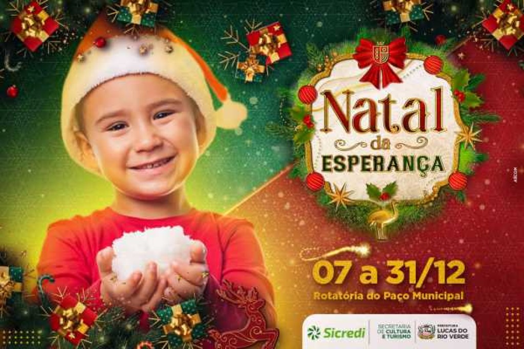 A Prefeitura de Lucas do Rio Verde, por meio da Secretaria de Cultura e Turismo, está se preparando para o lançamento do Natal da Esperança 2024. O evento acontecerá do dia 07 a 31 de dezembro, na rotatória do Paço Municipal, e contará com o patrocínio da cooperativa Sicredi Ouro Verde.