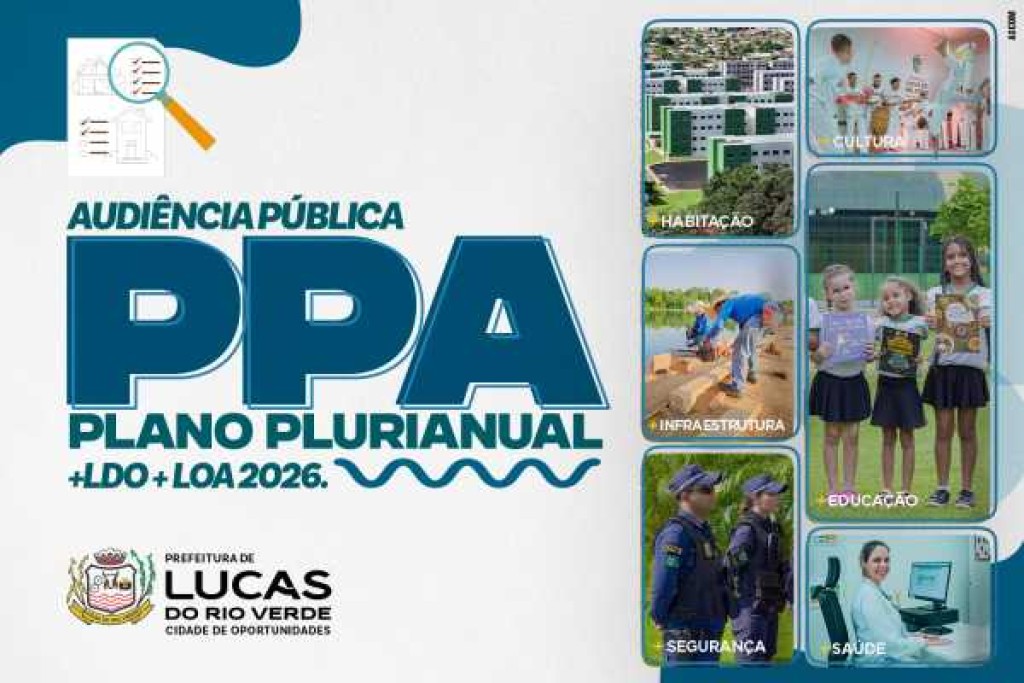 A Prefeitura de Lucas do Rio Verde promoverá, nesta quinta-feira (2), a audiência pública para debater a Lei Orçamentária Anual (LOA), referente ao ano de 2026, além do Plano Plurianual (PPA) 2026–2029 e a Lei de Diretrizes Orçamentárias (LDO). O evento será realizado presencialmente às 18h, no Auditório da Câmara de Vereadores, e transmitido de forma on-line no Youtube.