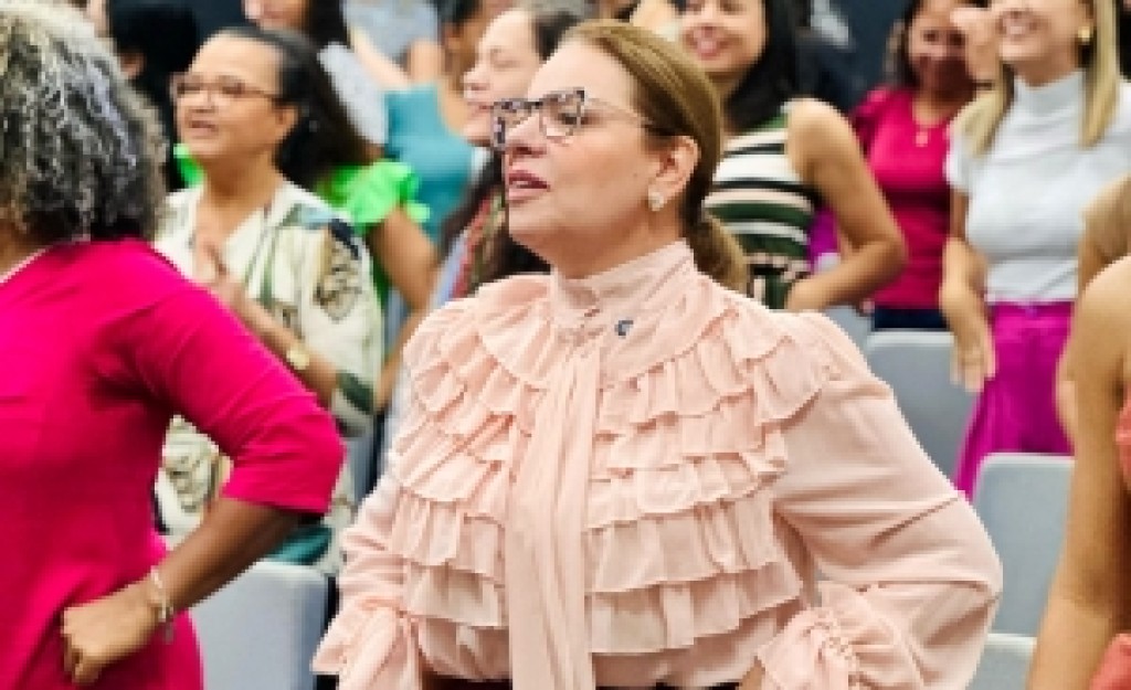 A presidente da Câmara de Cuiabá, vereadora Paula Calil (PL), participou de uma homenagem ao Dia Internacional da Mulher na Secretaria Municipal de Educação (SME).