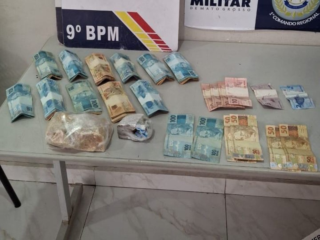 Na verificação de seus documentos, os policiais não identificaram nenhum mandado de prisão. Mas, no mesmo local, foram localizadas duas porções grandes de entorpecentes, sendo uma de pasta base de cocaína e outra de maconha. Também dentro da casa, foram apreendidos a quantia de R$ 11.447,00 em dinheiro.