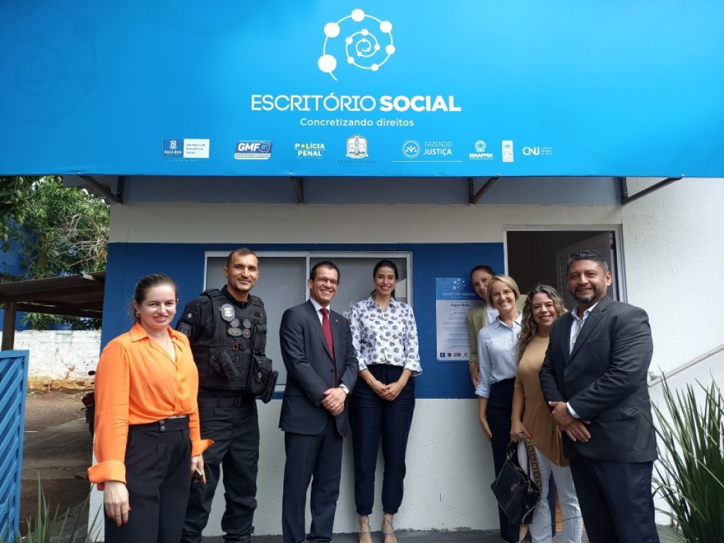 O Poder Judiciário de Mato Grosso, por meio do Grupo de Monitoramento e Fiscalização do Sistema Carcerário e Socioeducativo (GMF-MT) e a Prefeitura de Água Boa (730 km de Cuiabá), inauguraram, na manhã desta segunda-feira (11 de novembro), mais uma unidade do Escritório Social no estado, que passa a contar com 10 unidades, voltadas a apoiar a reinserção social de pessoas privadas de liberdade, por meio do acesso a vagas de trabalho, educação, saúde, documentação, entre outras formas de assistência para si e suas famílias. O Escritório funciona na Avenida Norberto Schwantes, Centro II, esquina com a Rua 03, ao lado do Sine. “Hoje é um dia de festa para a execução penal de Mato Grosso. Este Escritório Social, em Água Boa, representa mais um elo desta corrente em prol da reinserção social e no combate à reincidência. Agradeço imensamente ao desembargador Orlando Perri, ao prefeito Mariano Kolankiewicz Filho, ao promotor de Justiça Roberto Farinazzo e, principalmente, à primeira-dama e peça fundamental deste projeto, Juliana Souza Kolankiewicz”, disse a juíza Silvana Fleury Curado, da 1ª Vara Criminal de Água Boa.