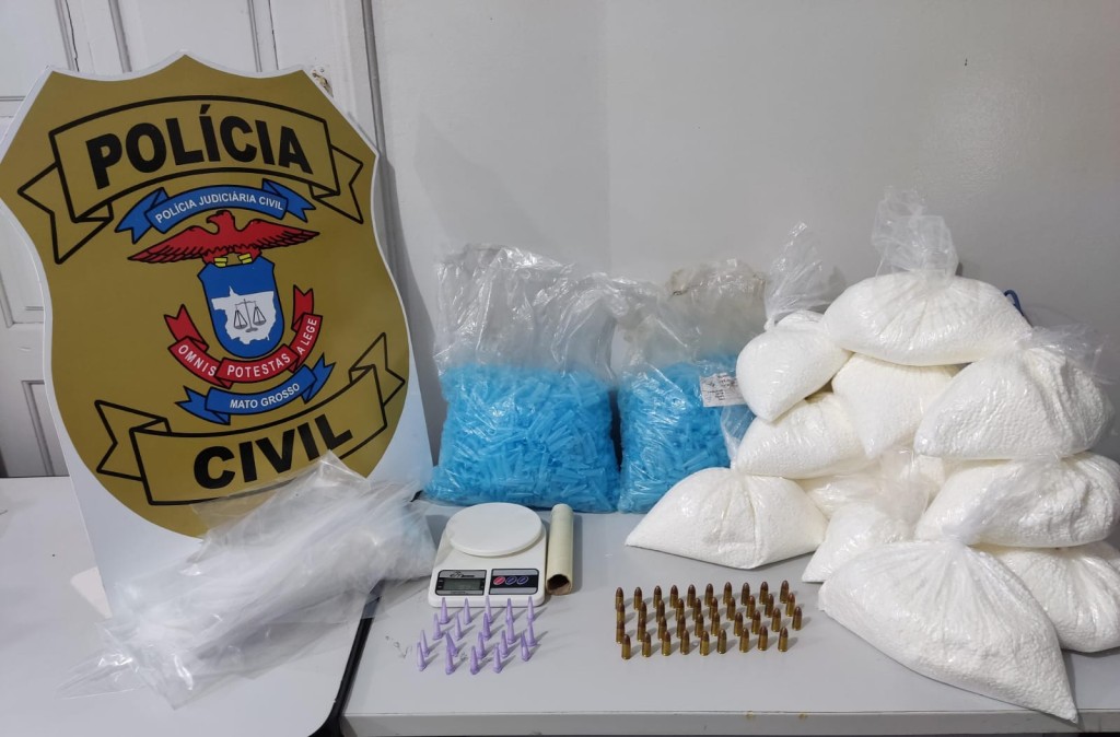 Na casa, ainda foram encontrados 19 pinos de cocaína, balança de precisão e outros apetrechos. O material apreendido estava na casa de um criminoso detido esta semana, em Araputanga, ocasião em que apresentou documento falso e foi detido em flagrante com outra quantidade do mesmo insumo químico.