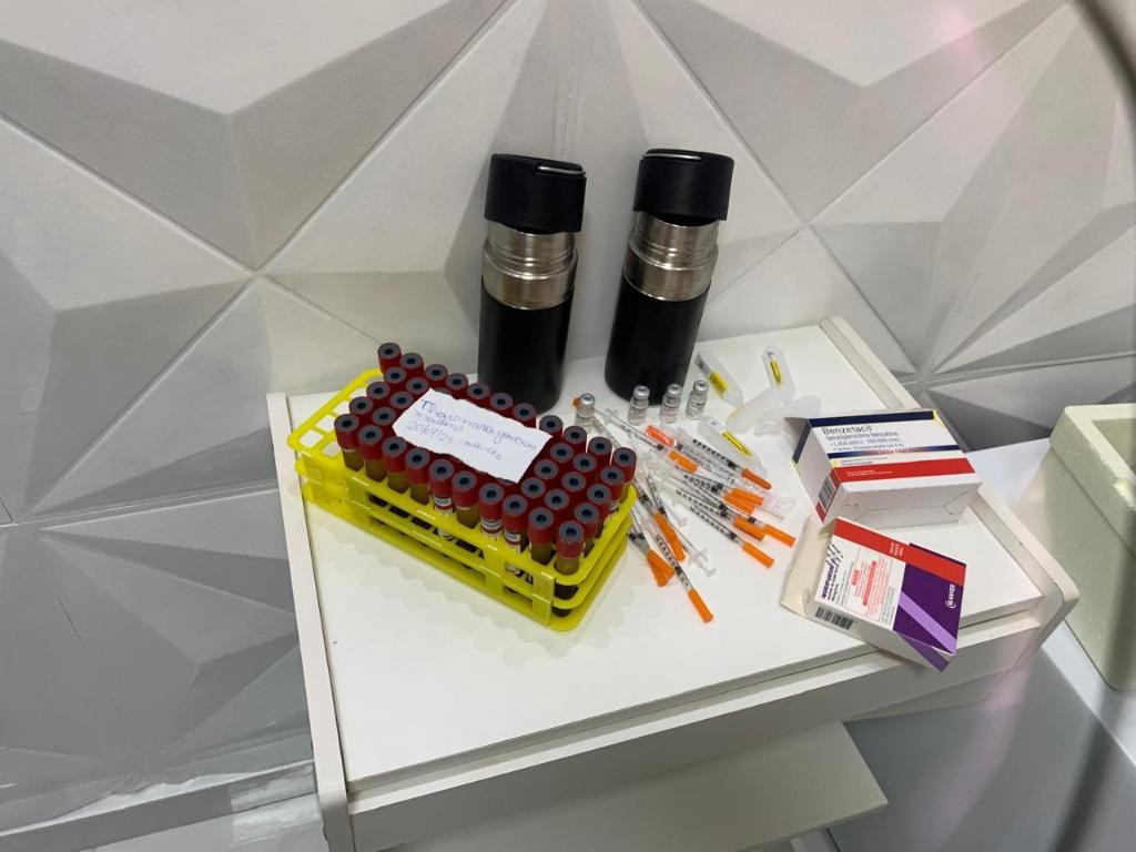 Na primeira interdição da clínica, no dia 21 de março, os fiscais já haviam encontrado uma geladeira cheia de tubos com sangue coletado de pacientes, sem identificação, usados em procedimentos de Plasma Rico em Plaquetas (PRP).