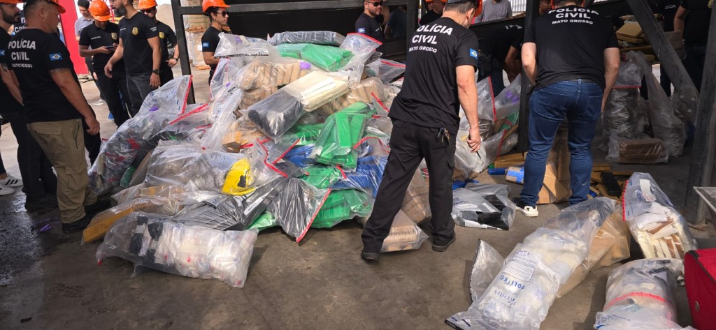 O carregamento contendo maconha, pasta base de cocaína, entre outras substâncias ilícitas, foi apreendido no último trimestre deste ano de 2024, em Cuiabá, Várzea Grande e região.