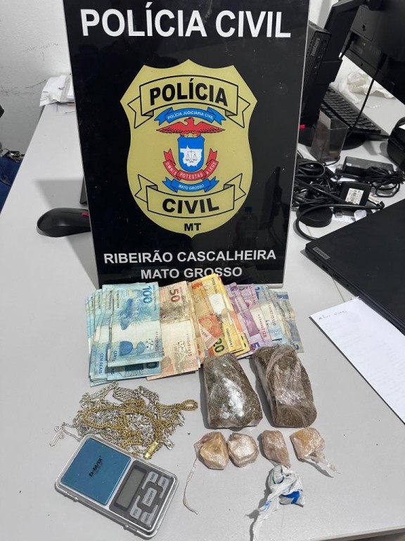 Diante do flagrante, o casal foi preso, levado para a Delegacia de Ribeirão Cascalheira e autuado por tráfico de drogas.