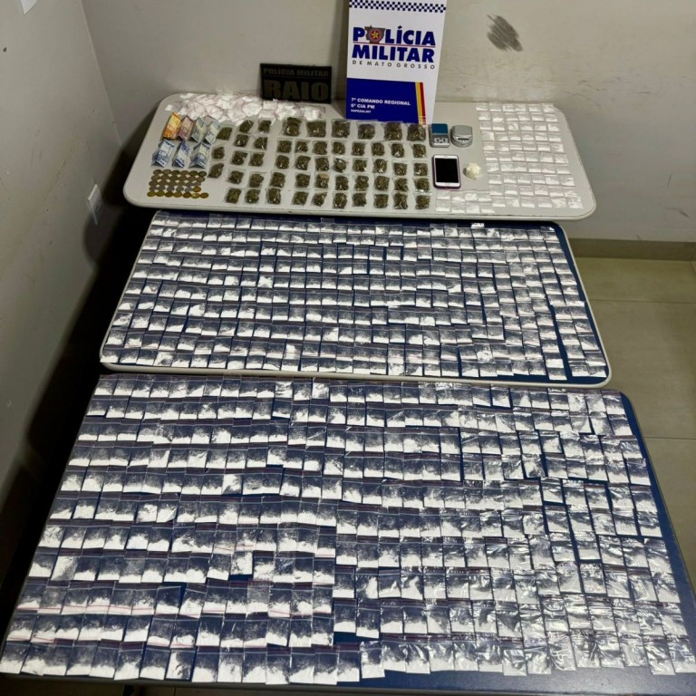 Com uma das mulheres, os policiais encontraram um pacote com 15 porções de cocaína. Sobre o material, a suspeita relatou que realiza o tráfico de drogas a mando de uma facção criminosa e que os entorpecentes seriam de um homem, que se encontra preso na Cadeia Pública de Campo Novo do Parecis.