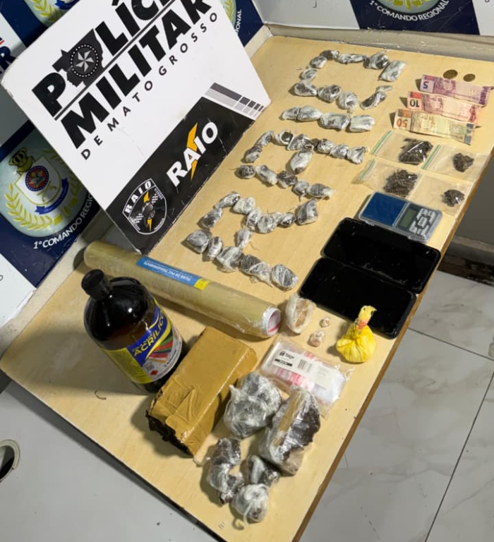 Dois homens, de 18 e 21 anos, foram presos, na noite desta quinta-feira (12.2), por policiais militares da 24ª Companhia Independente de Motopatrulhamento Tático (Raio), suspeitos por tráfico de drogas, em Cuiabá. Os militares recolheram 57 porções de entorpecentes, entre maconha e pasta base de cocaína, além de materiais para embalagem e preparo dos ilícitos.
