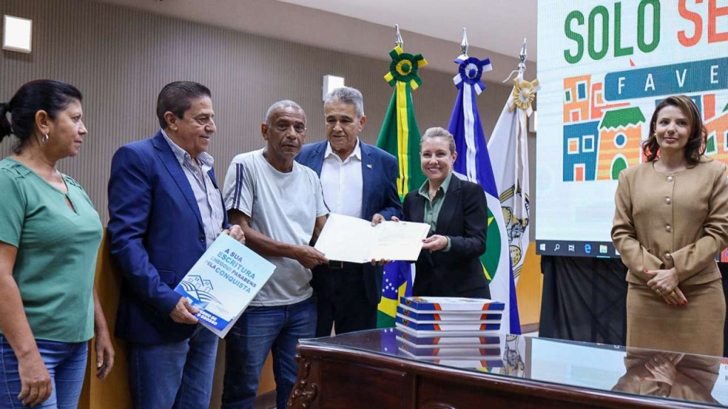A prefeita de Várzea Grande, Flávia Moretti (PL), protagonizou nesta sexta-feira (13), um dos momentos mais simbólicos da Semana do Solo Seguro Favelas, promovida pela Corregedoria-Geral da Justiça de Mato Grosso. Durante o evento, realizado no início da tarde, ela recebeu das mãos do juiz auxiliar do Conselho Nacional de Justiça (CNJ), Rodrigo Gonçalves de Souza, e do corregedor-geral do TJMT, José Luiz Lindote, 444 títulos de propriedade referentes ao Residencial 8 de Março — um marco histórico após quase 20 anos de luta dos moradores por segurança jurídica.