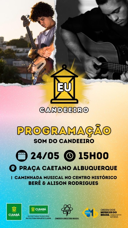 A Prefeitura de Cuiabá, por meio da Secretaria Municipal de Cultura, Esporte e Lazer, convida a população para mais uma atração do projeto ‘Eu Candeeiro’ nesta sexta-feira (24). O evento começará às 15h, com ponto de concentração na Praça Caetano Albuquerque, no Centro Histórico da capital.