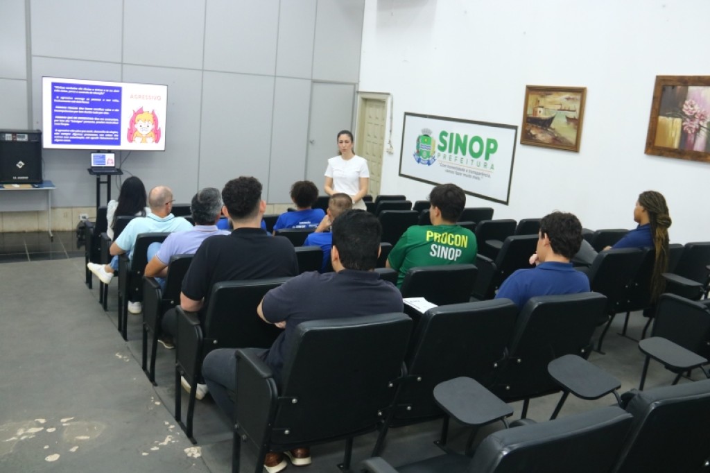 A Prefeitura de Sinop, por meio da Secretaria de Administração e Modernização e da Escola de Governo, promoveu nesta sexta-feira (07) mais uma etapa do programa de formação contínua dos servidores públicos municipais. A ação contemplou a equipe do Programa de Proteção e Defesa do Consumidor (Procon), que participou de um treinamento sobre Comunicação Assertiva, com foco na melhoria do relacionamento interpessoal e na qualidade do atendimento à população.