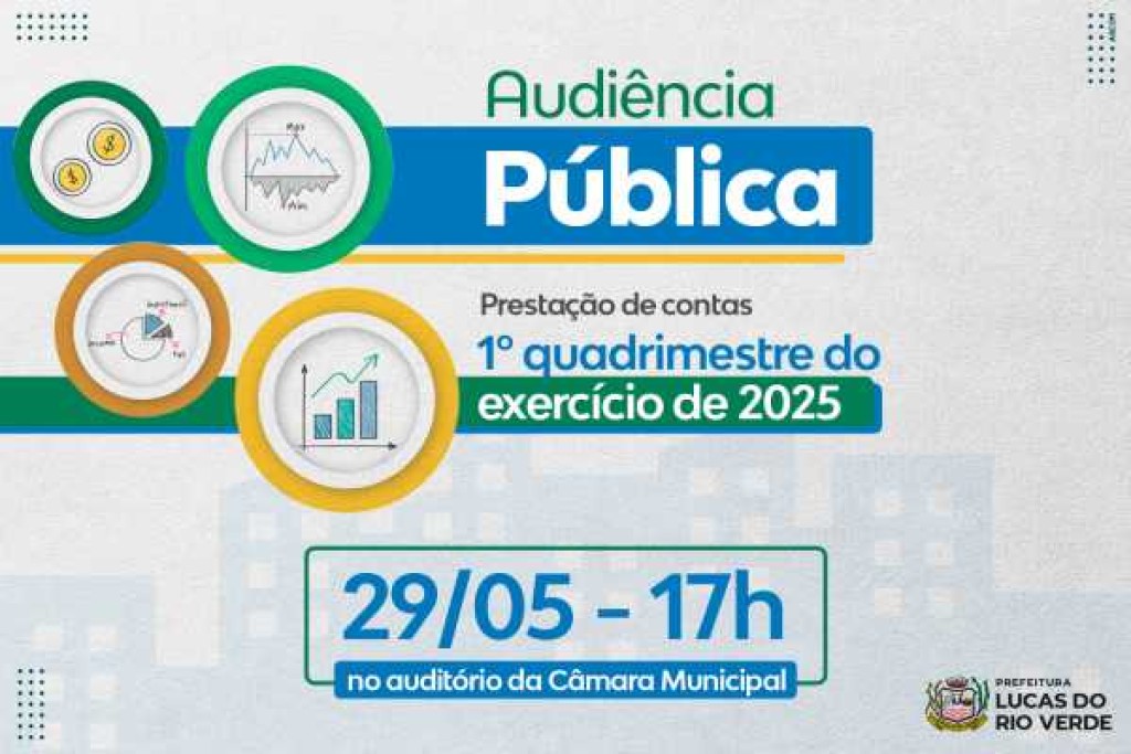 Em conformidade com a Lei de Responsabilidade Fiscal nº 101/2000, a Prefeitura de Lucas do Rio Verde, por meio da Secretaria de Desenvolvimento Econômico, Planejamento e Cidade, realizará uma audiência pública para a prestação de contas do 1º quadrimestre do exercício de 2025. O evento será nesta quinta-feira (29), no auditório da Câmara de Vereadores, com início às 17h, e transmitida, de forma on-line, através do canal do Legislativo Municipal no youtube.