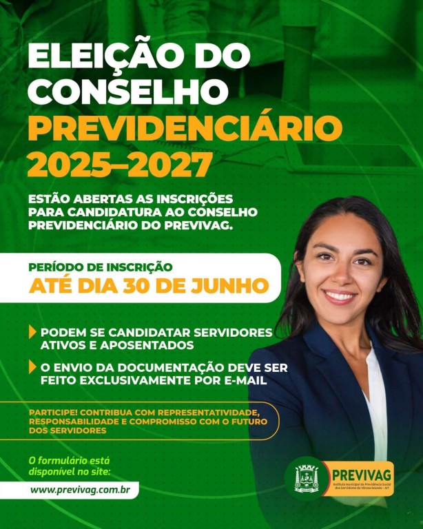 Estão abertas, até o dia 30 de junho deste ano, as inscrições para os servidores municipais interessados em compor o novo Conselho Previdenciário do Instituto de Previdência dos Servidores Públicos Municipais de Várzea Grande (Previvag). O processo eleitoral está regulamentado pela Portaria nº 143/2025 e visa garantir representatividade ativa e transparente na gestão dos recursos previdenciários do funcionalismo público.