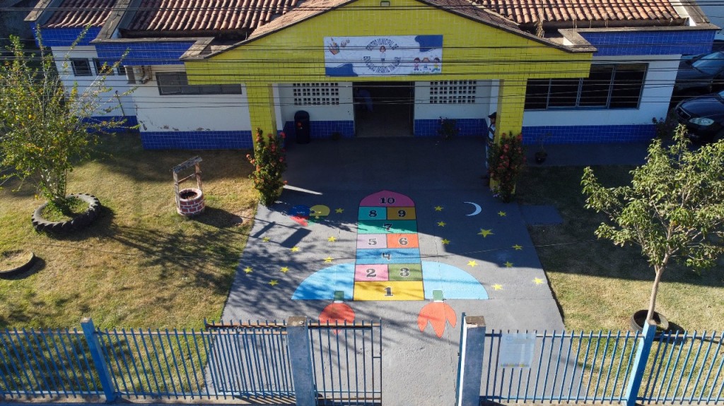 Com pinturas no chão e em áreas comuns, o novo visual dos pátios passou a incluir jogos tradicionais como amarelinha, caracol, circuito motor, entre outras atividades visuais que despertam o interesse das crianças e tornam o aprendizado ainda mais divertido.