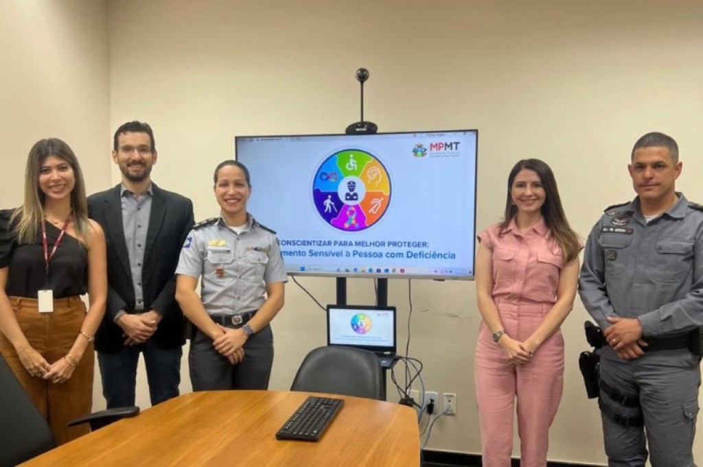 O projeto institucional “Conscientizar para Melhor Proteger – Policiamento Sensível à Pessoa com Deficiência” foi pauta de uma reunião entre o Ministério Público do Estado de Mato Grosso e a Polícia Militar, na manhã desta quarta-feira (23), na sede das Promotorias de Justiça de Cuiabá. No encontro, foram discutidas estratégias para capacitar os profissionais de segurança pública na realização de um policiamento mais sensível e inclusivo, voltado ao atendimento adequado das pessoas com deficiência.