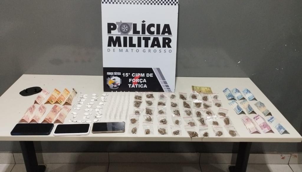 Policiais militares da Força Tática do 2º Comando Regional apreenderam, na noite desta quinta-feira (27.3), 118 porções de entorpecentes, uma arma de fogo e munições durante duas abordagens em Várzea Grande. Quatro homens foram presos em flagrante suspeitos por tráfico de drogas e porte ilegal de arma de fogo.