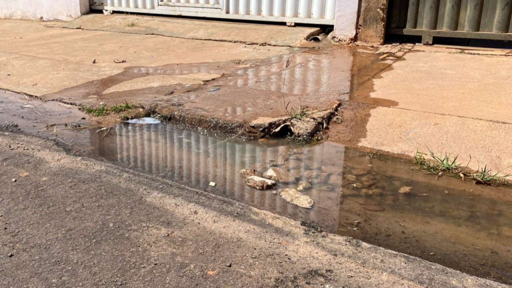 Registros danificados e descarte irregular de água comprometem pavimentação no Paiaguás