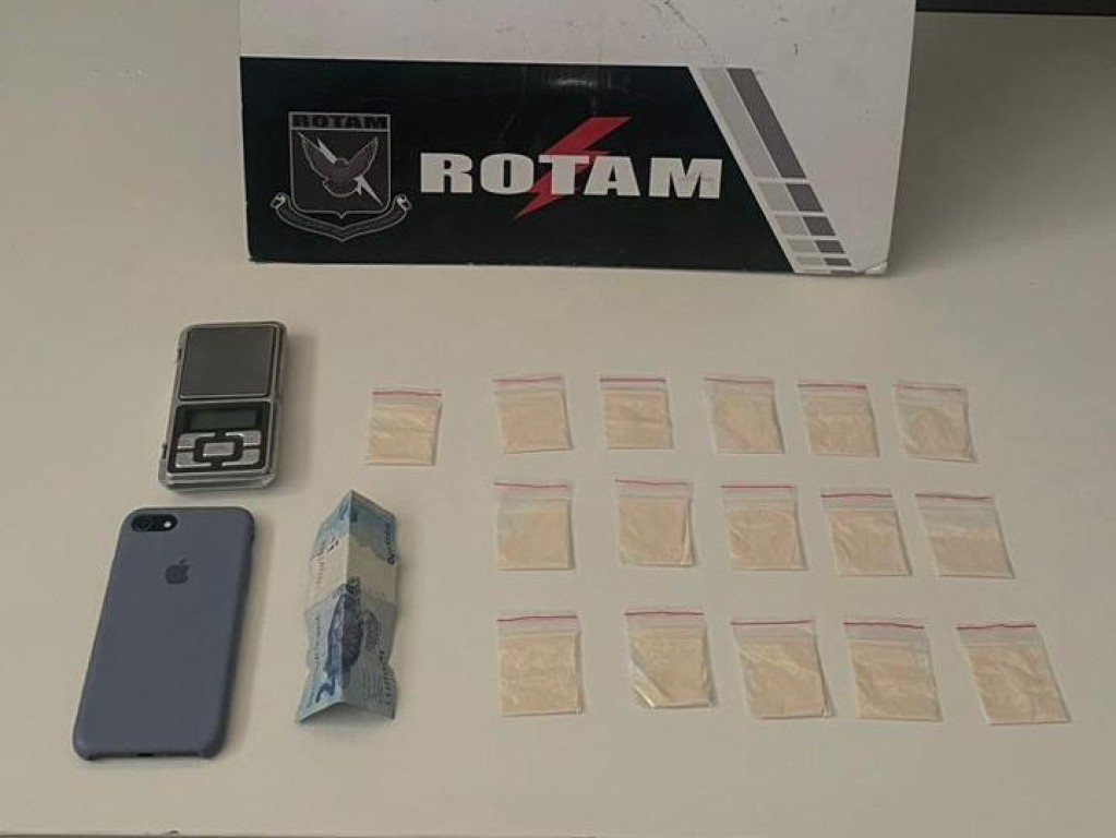 Militares do Batalhão de Rondas Ostensivas Tático Móvel (Rotam) prenderam em flagrante um homem de 21 anos por tráfico ilícito de drogas, na tarde desta terça-feira (15.10), em Várzea Grande. Na ação, os policiais apreenderam 16 porções de substância análoga à cocaína.