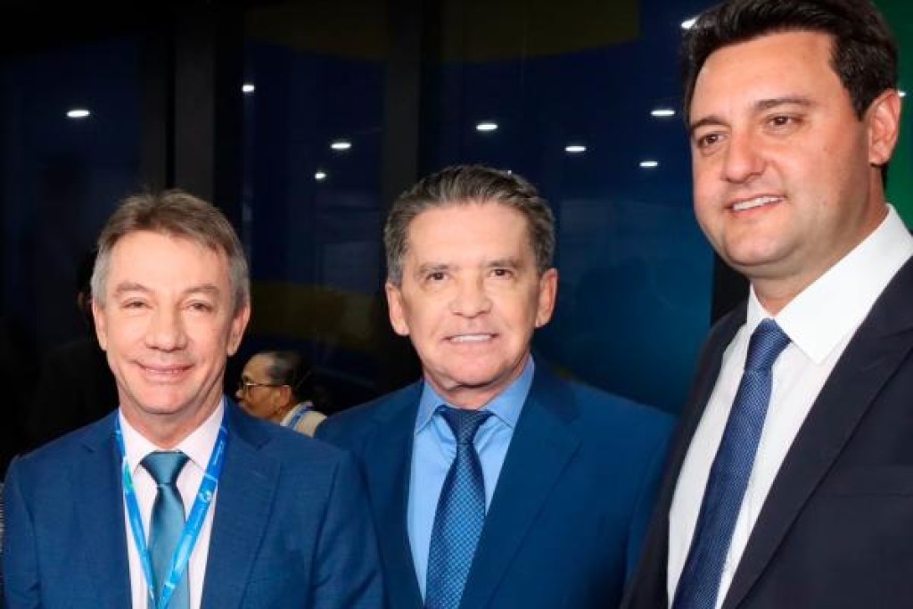 Presidente do TCE-MT, conselheiro Sérgio Ricardo, com os governadores do Paraná, Ratinho Júnior, e de Roraima, Antonio Denarium. Clique aqui para ampliar.