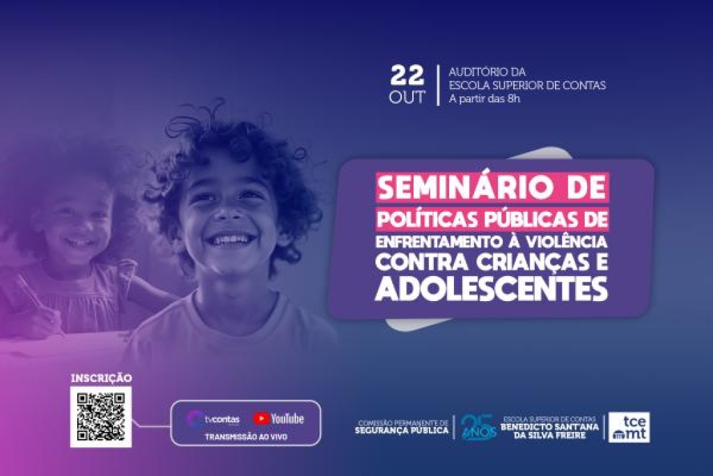 O Tribunal de Contas de Mato Grosso (TCE-MT) realiza, a partir das 8h desta quarta-feira (22), no auditório da Escola Superior de Contas, o “Seminário de Políticas Públicas de Enfrentamento à Violência Contra Crianças e Adolescentes”. Iniciativa da Comissão Permanente de Segurança Pública, o encontro reúne especialistas com atuação local e nacional, gestores e representantes de órgãos públicos e entidades com o intuito de fomentar o diálogo interinstitucional e construir estratégias conjuntas de proteção à infância.